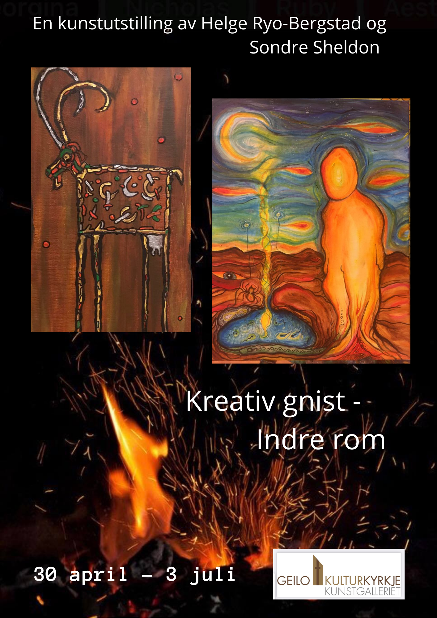 Lørdag den 1. mai åpner en ny utstilling i kunstgalleriet til Geilo kulturkyrkje med Helge Ryo-Bergstad og Sondre Philip Sheldon, begge fra Geilo. Begge kunstnerne betegner seg som amatører, men har helt fra de var små vært glade i å tegne.