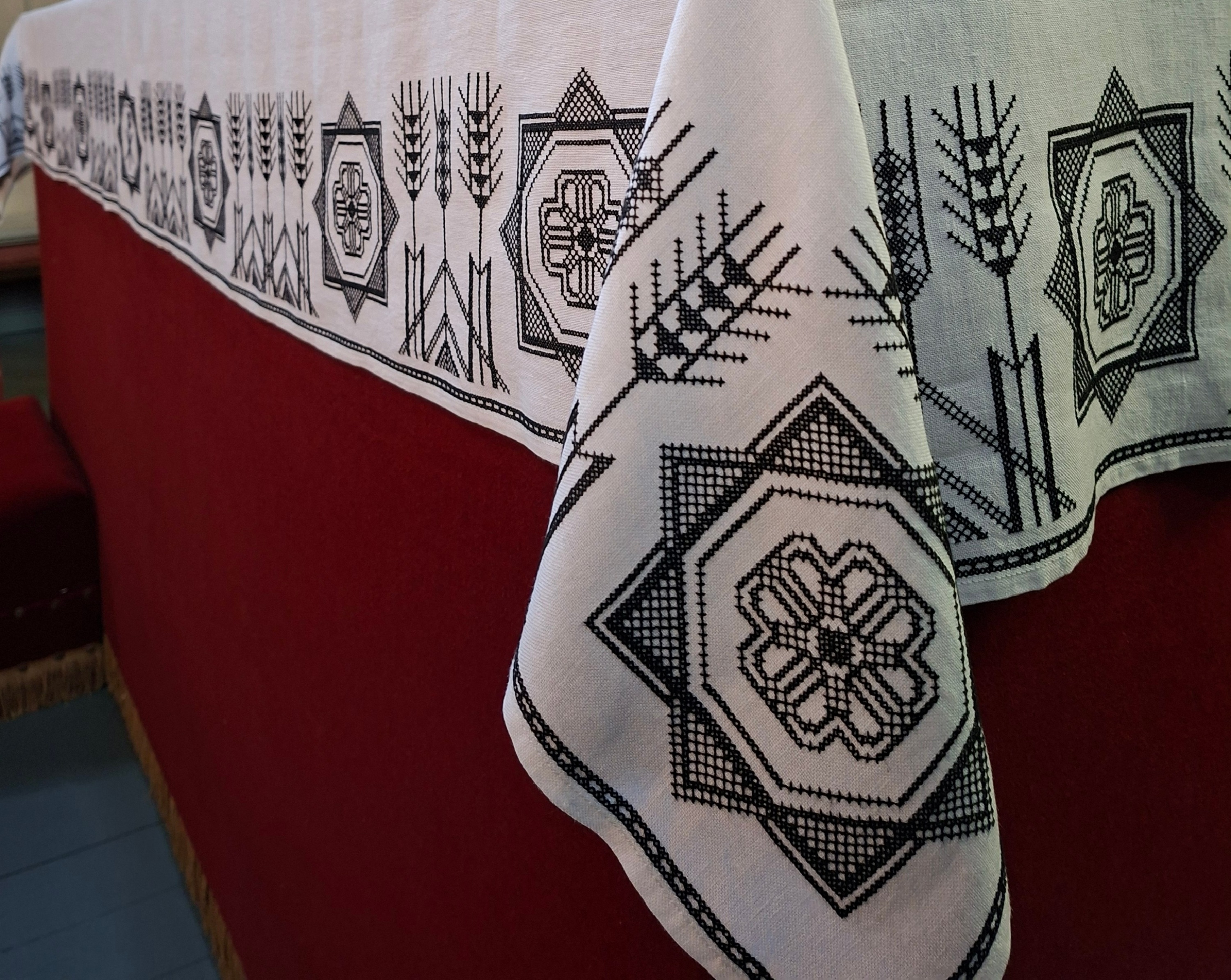Liv Østtveit har sydd ny alterduk til Hol kyrkje i anledning 100-årsjubiléet.