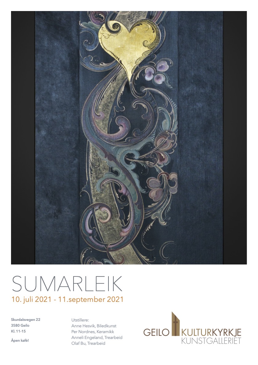 Ny kunstutstilling i Geilo kulturkyrkje i sommer med Per Nordnes fra Lofthus - keramikk, Anneli Engeland fra Bulken fra Voss - trearbeid, Olaf Bu fra Eidfjord - trearbeid og Anne Hesvik fra Strandvik, Bjørnarfjorden - billedkunst. Utstillingen åpner lørdag 10.juli kl 13!